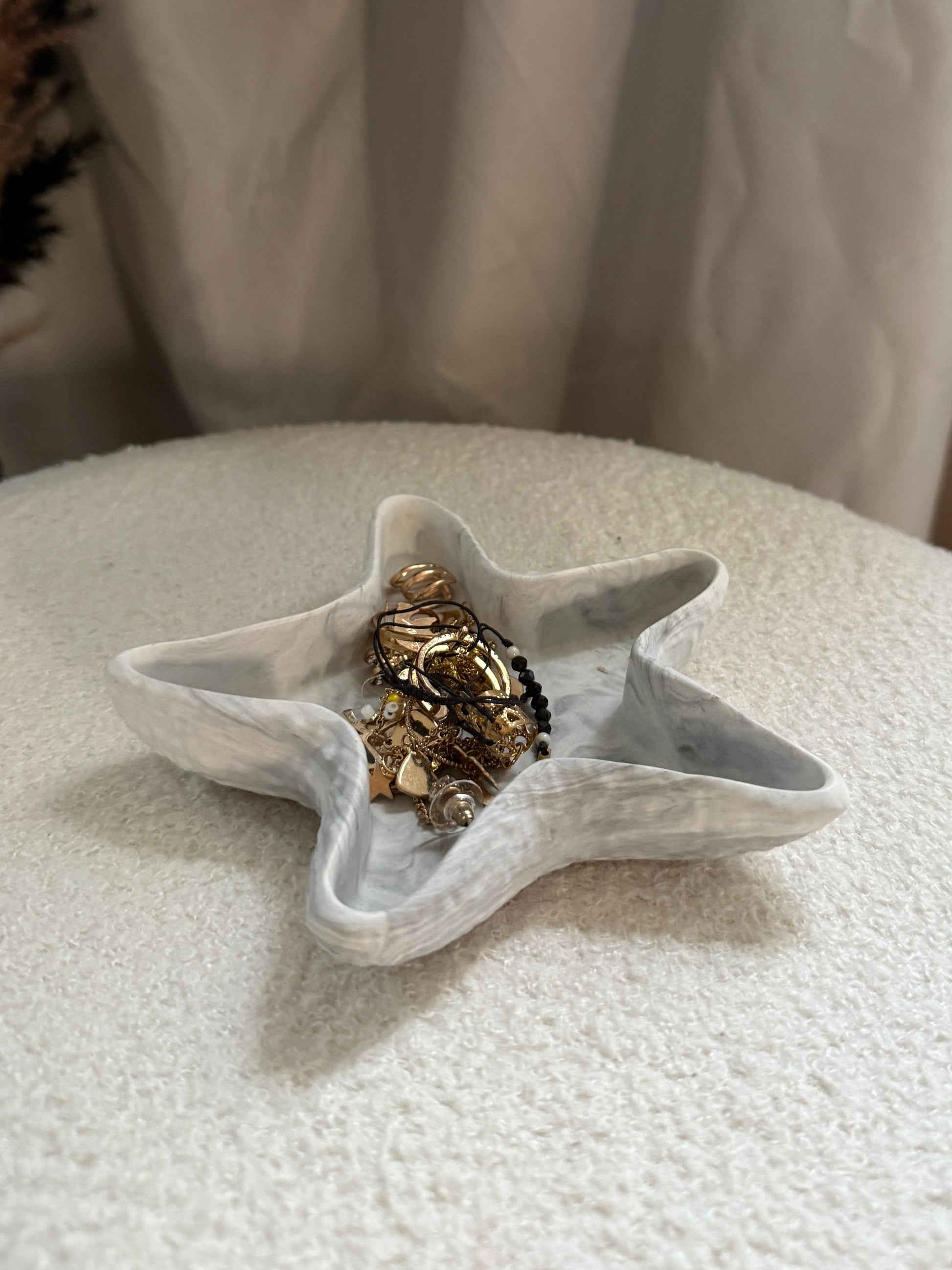 Découvrez notre vide-poche étoile en jesmonite, une pièce artisanale à la fois pratique et élégante.